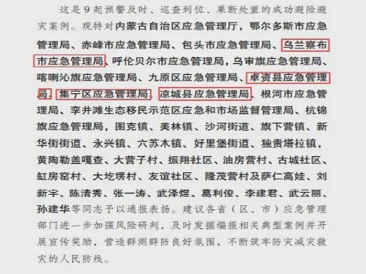 通报表扬!乌兰察布市成功处置四起重大灾害典型案例